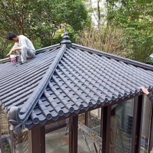 仿古瓦樹脂瓦一體屋檐瓦片滴水屋頂中式門頭室內(nèi)外圍墻裝飾塑料瓦