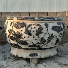 荷花魚缸流水景觀雕塑水景大理石青石家居室內(nèi)擺件石頭石雕魚缸