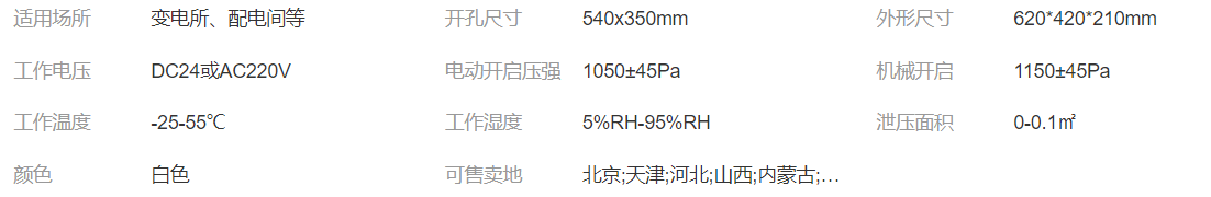 三、電動泄壓口參數(shù):