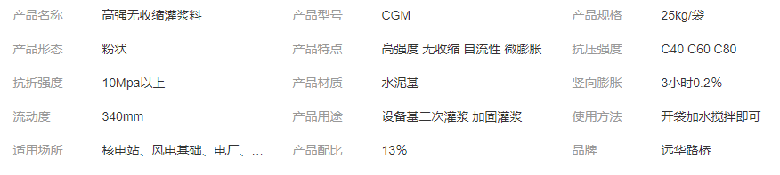 遠華牌 機械設(shè)備無墊安裝 水泥基二次高強灌漿料 H-80型
